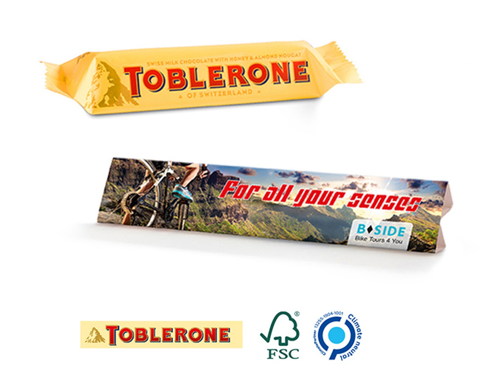 Produzieren Sie das passende Werbegeschenk für ihre Zielgruppe. Bedrucken Sie diesen innovativen Werbeartikel toblerone schokoriegel (35g) oder einen unserer Logo bedruckten essbares Produkte.