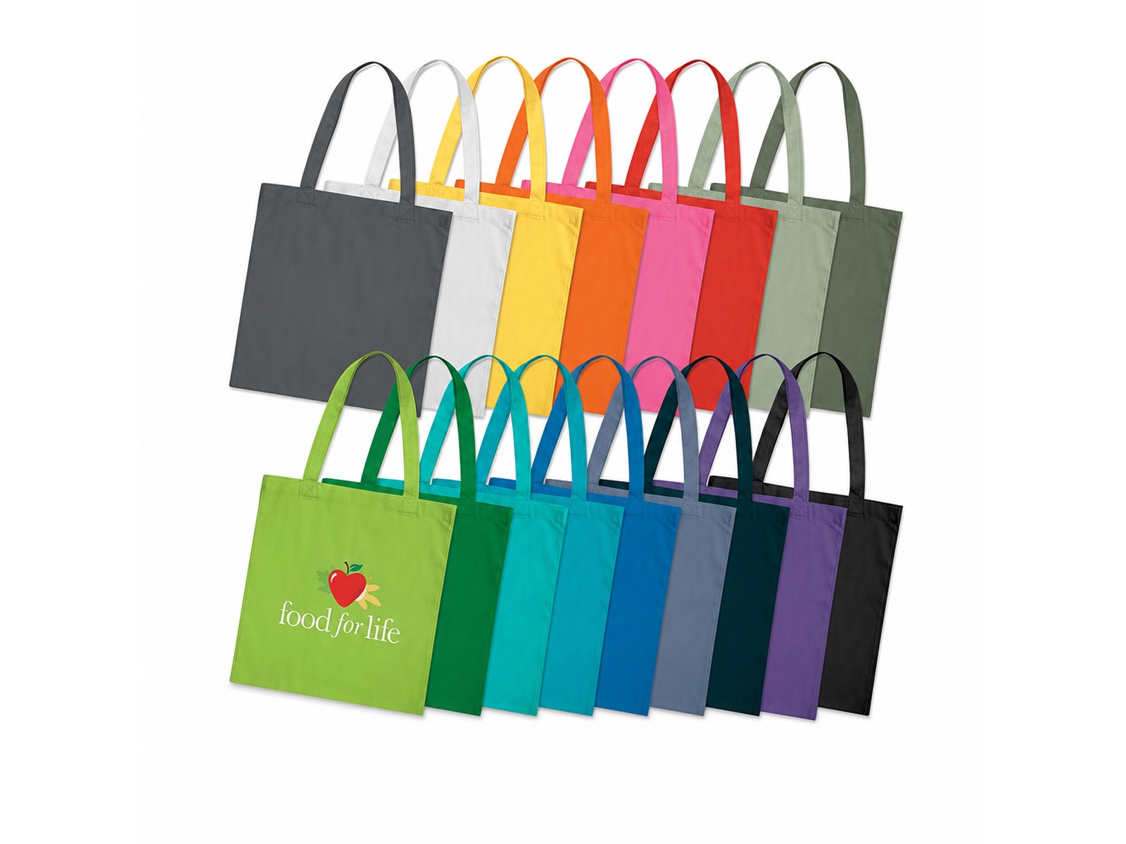 Werbeartikel-Tragetaschen aus Baumwolle von Gala eignen sich hervorragend als Einkaufstasche oder Dokumententasche für Konferenzen und Veranstaltungen. Die umweltfreundlichen Tragetaschen von Gala Cotton bestehen aus natürlicher Baumwolle, die eine erneuerbare Ressource darstellt. Farben: Weiß, Gelb, Orange, Rosa, Rot, Hellgrün, Dunkelgrün, Blaugrün, Hellblau, Königsblau, Marineblau, Lila, Schwarz. Abmessungen: B 380 mm x H 410 mm (ohne Griffe). Grifflänge: 580mm. Der Preis beinhaltet einen 1-Farben-Druck in 1 Position. Vollfarbdruck gegen Aufpreis von 3,50 USD pro Einheit erhältlich.