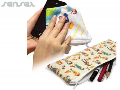 Kombinieren Sie die Praktikabilität eines Bleistifts oder Kosmetiktasche mit dem Komfort eines Mikrofaser-Reinigungstuch und lassen Sie Ihre benutzerdefinierten Druck allover die Kosmetiktasche! Diese praktischen Kosmetiktaschen sind ideal für beautyproducts oder für die Schule zu speichern, wenn ein Handtuch immer praktisch ist, sauber zu helfen, mit Sonnenbrille, Hände oder irgendetwas anderes, das eine saubere braucht. Diese Beutel verdoppeln auch als Hand und Gesicht Handtuch oder reinigt Ihren Desktop-Computer-Monitor, Laptop, Tablet und Smartphone-Bildschirme usw. Die Mikrofasertuch Beutel sind aus 85% Polyester + 15% Nylon, 250 GSM