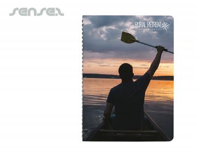 Flexible, Rundum-Abdeckungen mit abgerundeten Ecken; in Vollfarben auf gesamte äußere Hülle gedruckt. Verfügt über einen 12-Monats-Planer vor und 50 Blatt liniertem Füllstoff (Seiten werden zum schnellen Nachschlagen mit Registerkarten). Schwarz-Draht-Bindung ist Standard (mehr Farbe vorhanden).