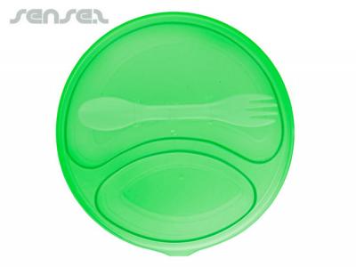 Kunststoff-Rundsalatfeld mit zwei Fächern und farbigen Deckel ein Besteckteil, mit drei Funktionen (Löffel, Messer und Gabel) enthält. Perfekt, um Ihre Nahrung zu tragen! [Liste] Produkteigenschaften: