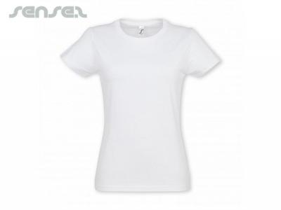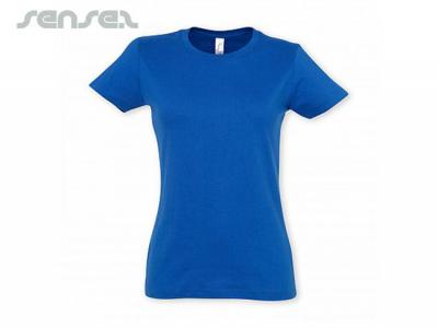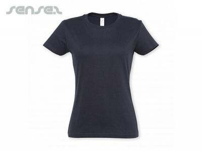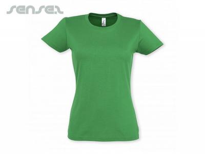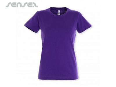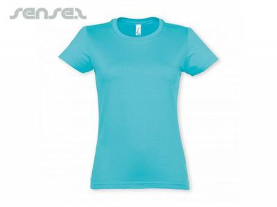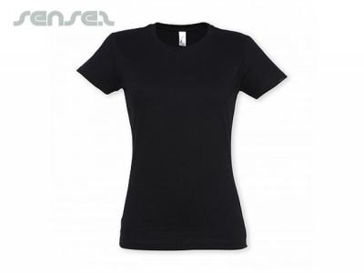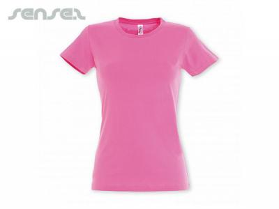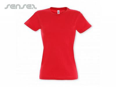 Silkscreen Printing your promotional miranda frauen t-shirts (190gsm):Your promotional miranda frauen t-shirts (190gsm) can be silk screen printed in 1 or more colours. Costs shown include a 1 colour logo print on your custom branded miranda frauen t-shirts (190gsm). We can print more than 1 colour, however it incurs extra costs. We can achieve a perfect PMS colour match for the print.