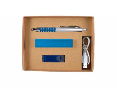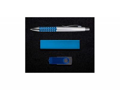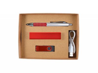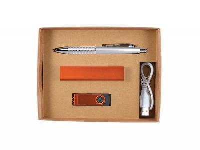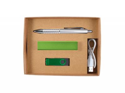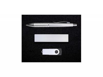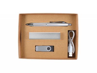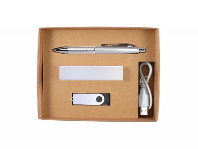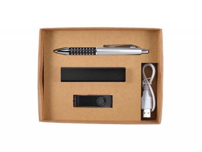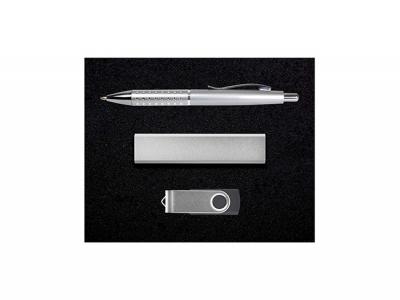 Erstklassiges Geschenkset aus Kugelschreiber, Power Bank (Ladegerät für tragbares Telefon), Flash-Laufwerk in Geschenkbox mit lasergeschnittener Schaumstoffeinlage. Perfekt als besonderes Geschenk! Farbe: Silber [Liste] Branding-Optionen: