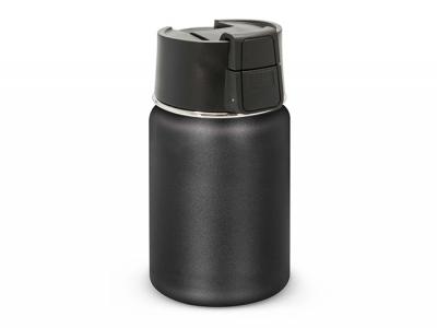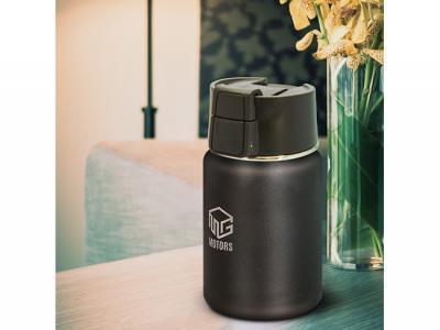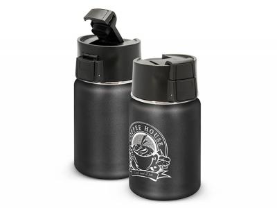 Kompakter, 400 ml doppelwandiger, vakuumisolierter Edelstahlbecher, der Getränke bis zu sechs Stunden heiß hält. Es ist auch ideal, um Suppe und Essen zur Arbeit oder zur Schule zu bringen. Es verfügt über einen sicheren Schraubdeckel mit einem druckknopfbetätigten Klappverschluss, der für eine reibungslose, mühelose Bedienung federbelastet ist. Der Deckel verhindert Lecks und Leckagen, selbst wenn der Becher umgestoßen wird und so robust ist, dass er in einer Tasche oder einem Rucksack getragen werden kann. Es lasergraviert zu einer natürlichen Ätzung und wird in einer schwarzen Geschenkbox präsentiert. [Liste] Branding-Optionen