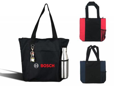 Styler Einkaufstasche ist aus 600D Polyester, schwarze Tasche mit farbigen Seiten-Design macht einen trendigen Shopper und hat einen vorderen handlichen Beutel für Ihre persönlichen Gegenstände. Schwarzer Web-Griff mit Mesh-Seitentasche zur Aufnahme der Trinkflasche. Top-Reißverschluss und ein Schlüsselring Reifen. Farben: schwarz / navy blau, schwarz / rot, schwarz / schwarz [Liste] Branding Optionen: