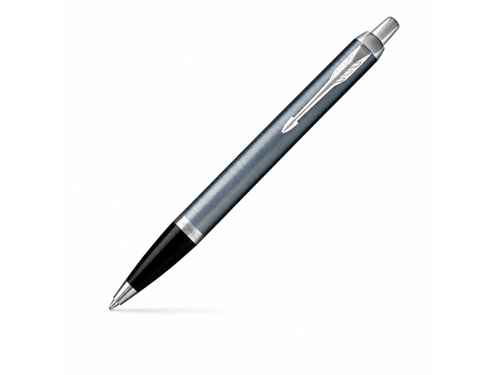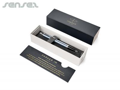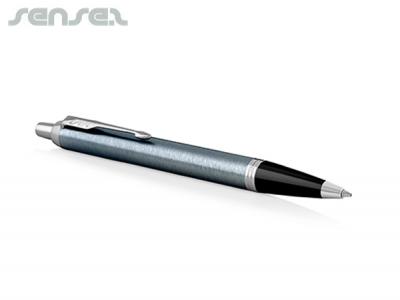 Der Parker Kugelschreiber besticht durch eine blaugraue Edelstahloberfläche mit eleganten Chromverzierungen und bietet einen eleganten Druckpunkt, einen einziehbaren schwarzen Kugelschreiber. Parker-Stifte können auf die Kappe oder den oberen Schaft gedruckt oder graviert werden, was großartige Optionen für Ihr Werbe-Logo bietet. [Liste] Branding-Optionen: