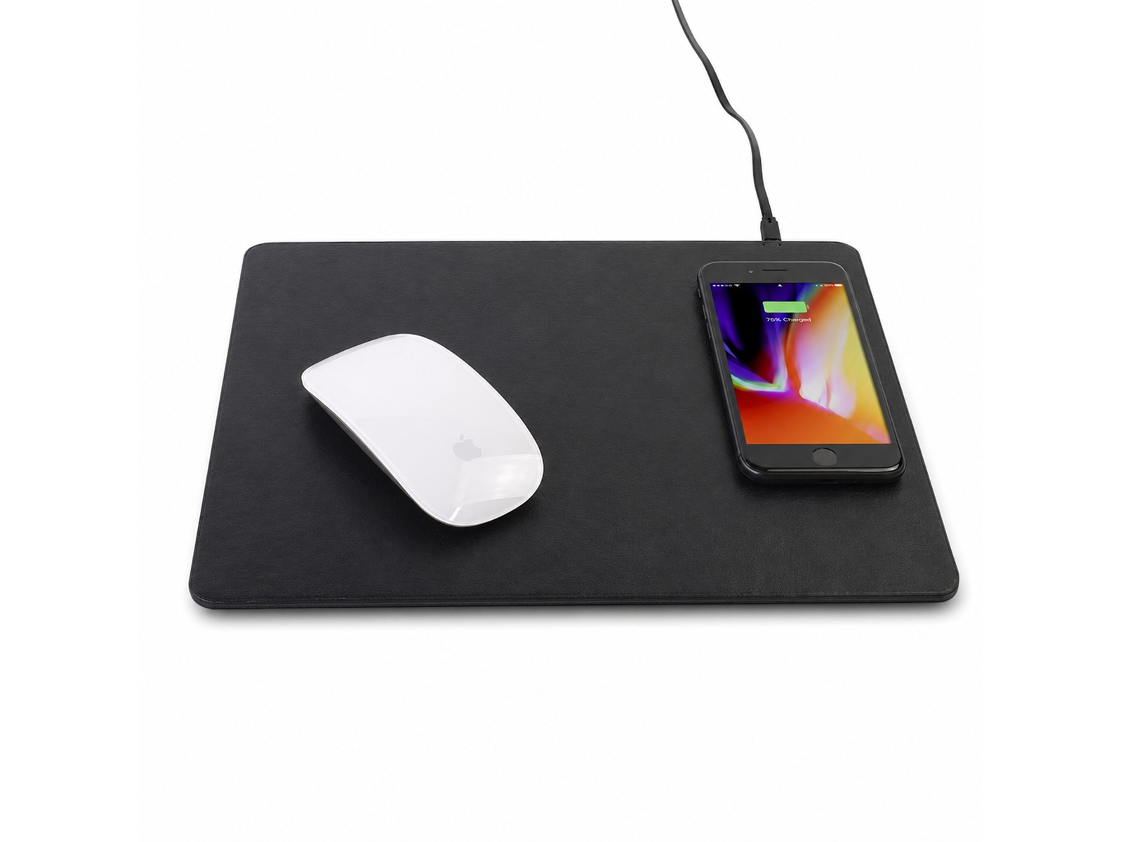 Allura Phone Charging Mouse Mat vereint die Funktionalität eines herkömmlichen Mauspads mit der neuesten drahtlosen Ladetechnologie. Verwenden Sie Ihre Maus und laden Sie Ihr Telefon gleichzeitig und auf demselben Pad auf. Allura ist aus PU-Leder gefertigt und bietet einen umfassenden Schutz. Schließen Sie das Mauspad einfach an eine beliebige 5-Volt-Gleichstromquelle an und setzen Sie das Telefon auf den Ständer, um den Ladevorgang zu starten. Dadurch wird Ihre Belegschaft aufgehellt und das Büro wird straffer und leitender. Kompatibel mit jedem Smartphone, das den drahtlosen Qi-Ladestandard erfüllt (z. B. iPhone 8, iPhone X, Samsung S8). Mit Micro-USB-Ladekabel. [Liste] Branding-Optionen: