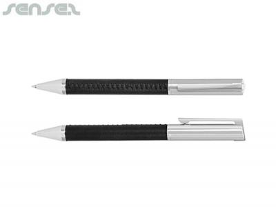 Diese Kugelschreiber mit kundenspezifischer Marke verfügen über einen komfortablen unteren Lauf mit Lederoptik und einem eleganten, gestickten Finish, einen oberen Messing-Lauf und einen federbelasteten Metallclip. Oberer Lauf, Clip, Mittelring und Spitze sind mit glänzender Chrombeschichtung versehen. Diese Werbekugelschreiber haben eine blaue TRENDS-Großraummine mit 1800 Meter deutscher, hergestellter DOKUMENTAL-Tinte und eine Hartmetallkugel für verbesserte Schreibqualität. Der obere Laserlaser graviert zu einer natürlichen Ätzung. Abmessungen: Durchmesser 10 mm x L 140 mm x 13 mm (einschließlich Clip) Branding-Optionen: [Liste]