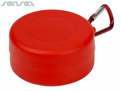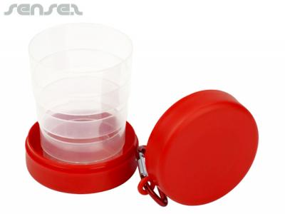 Kompakter faltbarer Trinkbecher aus Kunststoff (220 ml) mit Fach für Pillen / Zucker usw. mit einem Karabiner-Gürtelclip für Ihren Rucksack oder Ihre Tasche. Dies ist eine großartige Tasse in einem kompakten Behälter für Ihre Tasche, Kinder- oder Outdoor-Aktivitäten. [Liste] Branding-Optionen: