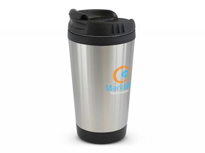 Bedrucken Sie dieses ruhige, doppelwandige edelstahlbecher (350 ml) oder einer unserer Best-seller reise»thermoskanne mit Ihrem Firmen Logo