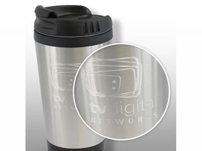 Engraving your logo on the promotional ayda doppelwandige rostfreie kaffeetassen (300ml) is usually done by Laser engraving, where the laser removes a thin layer of the metal surface. Your logo becomes part of the ayda doppelwandige rostfreie kaffeetassen (300ml) and is impossible to remove. Sometimes the engraved effect will be a different metal colour to the outside metal coating of your product. We can also engrave wood or plastic. Engraving is usually a more expensive branding method.