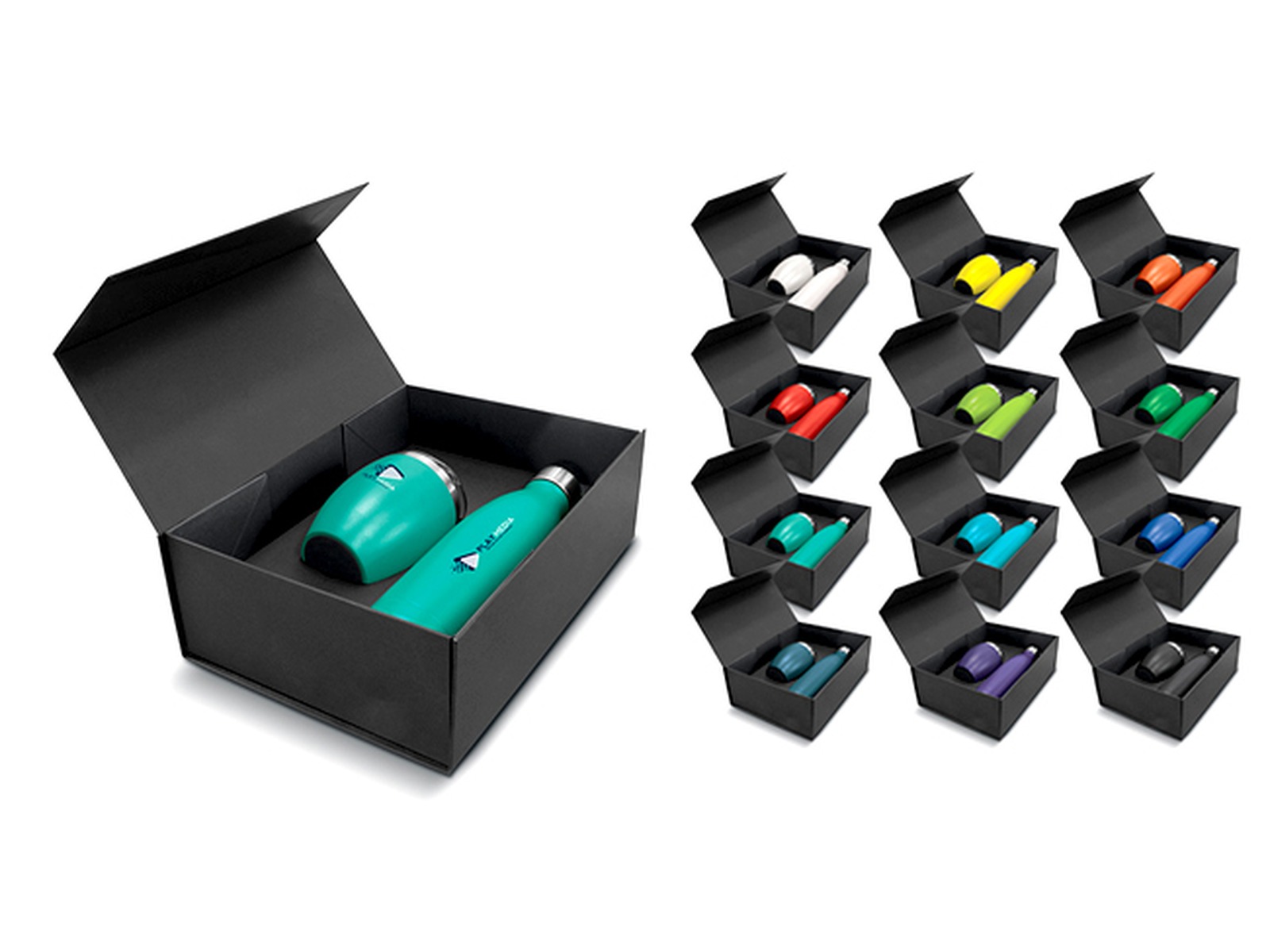 Das vakuumisolierte Messinger Rhino Geschenkset verfügt über ein atemberaubendes doppelwandiges, vakuumisoliertes Edelstahl-Geschirrset, das wunderschön in einer schwarzen Geschenkbox präsentiert wird. Das Set enthält eine pulverbeschichtete 500-ml-Messinger-Vakuumflasche und einen doppelwandigen rostfreien Rhino-Thermobecher (300 ml), der ebenfalls pulverbeschichtet ist. Messinger hat eine sichere Schraube am Edelstahldeckel und hält Getränke bis zu 24 Stunden kalt und bis zu 12 Stunden heiß. Rhino hat einen transparenten Deckel und hält Getränke bis zu drei Stunden lang heiß. Beide Artikel haben eine Lasergravur in glänzendem Stahl und sind BPA-frei. Diese Produkte sind nicht spülmaschinenfest und es wird empfohlen, sie von Hand zu waschen. Farben: Weiß, Gelb, Orange, Rot, Hellgrün, Kelly Green, Blaugrün, Hellblau, Königsblau, Marineblau, Lila, Schwarz. Der Deckel ist rostfrei auf der Flasche. [Liste] Branding-Optionen: