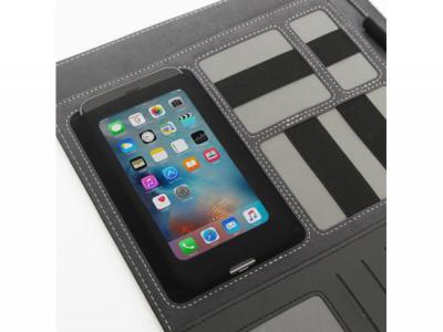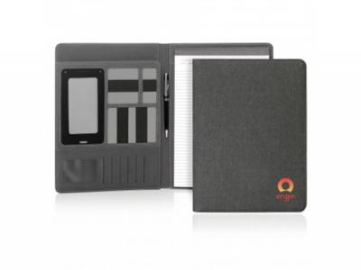 Linen Look Tech Compendiums sind wunderschön mit einem gewebten schwarzen Poly-Leinen-Stoff gestaltet. Dieses wunderschön gestaltete Kompendium im A5-Format bietet eine kompakte Lösung für Geschäftsleute / -frauen oder Studenten, die unterwegs sind. Es enthält eine Handytasche (für die meisten Telefone) mit einem berührungsempfindlichen Kontaktfenster, mehrere Karten- und Zubehörhalter, eine Stiftschlaufe und einen A4-Notizblock. [Liste] Branding-Optionen: