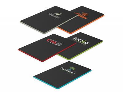 Silkscreen Printing your promotional gt black notebooks (a5):Your promotional gt black notebooks (a5) can be silk screen printed in 1 or more colours. Costs shown include a 1 colour logo print on your custom branded gt black notebooks (a5). We can print more than 1 colour, however it incurs extra costs. We can achieve a perfect PMS colour match for the print.