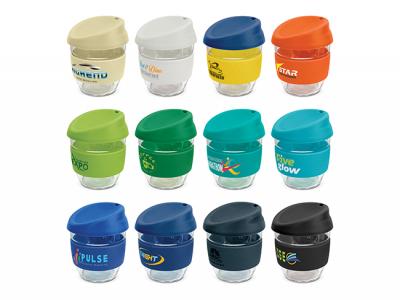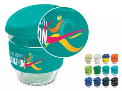- Werbeartikel Glass Cups With Flip Lids (235ml - 8oz)