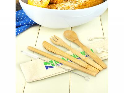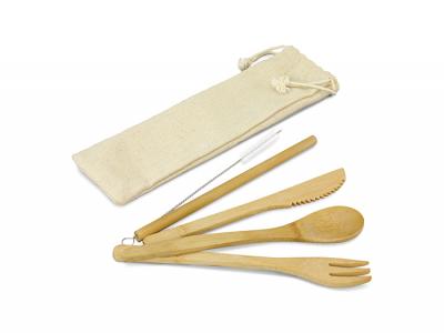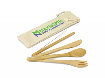 Werbeartikel Eco Bambus Besteck Sets mit Stroh