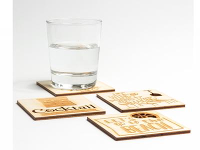 Werbeartikel Gravierte klobige Sperrholzuntersetzer - Quadrat (4 mm)