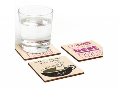 Werbeartikel Bedruckte klobige Sperrholzuntersetzer - Quadrat (4 mm)
