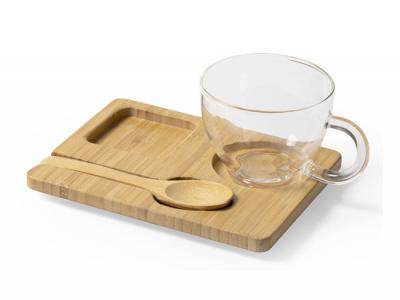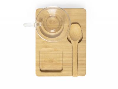 Werbeartikel Bambus Servierbrett und Glasbechersets (180ml)
