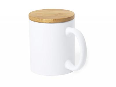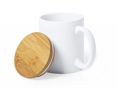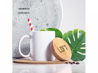 Werbeartikel Keramikbecher mit Bambusdeckel (370ml)