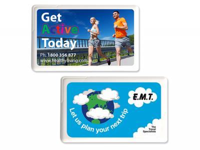 Ein einzigartiger Minzspender in Kreditkartengröße mit Schnappverschluss für ca. 50 zuckerfreie Pfefferminzbonbons. Diese benutzerdefinierten Minzkarten eignen sich hervorragend für jede Werbekampagne, da Sie mit Menschen jeden Alters und jeder Bevölkerungsgruppe kommunizieren können. Sie können auch für Mundhygiene und Gesundheitsfürsorge werben und diese eignen sich hervorragend zum Verteilen oder Versenden von Artikeln! Sie sind eine großartige leckere Qualität und sie sehen großartig aus. Die unten angegebenen Preise beinhalten einen einfarbig bedruckten Aufkleber auf einer Seite.