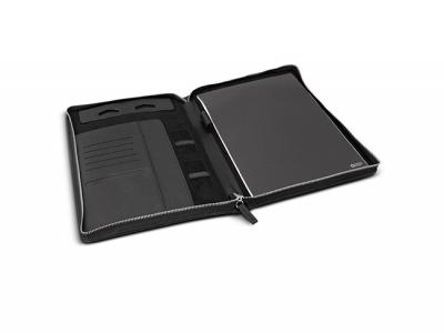 These custom branded Swiss Peak A4 compendiums speak the language of modern elegance and design. These deluxe portfolios are manufactured from premium Italian PU and have a silver zip-around closure.