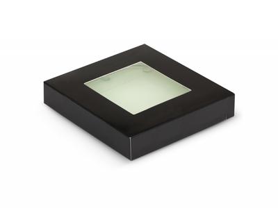 These custom printed sets of two round glass coasters come nicely presented in a stylish black gift box with a window to show off the brand. The coasters have three soft non-skid, non-marking polyurethane pads on the base.