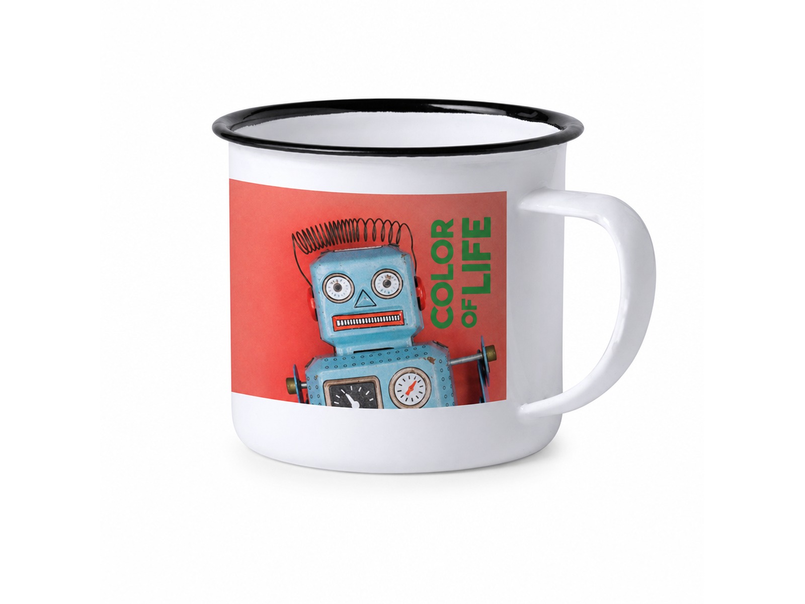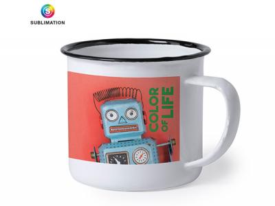 These retro designed metal mugs come with a 380ml capacity and are especially designed for full colour sublimation printing. They feature an elegant upper black ring and will be presented in an individual box. Their irregular finish enhances the vintage look.