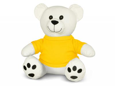 Get your artwork printed onto the t-shirts of these soft Personalised Teddy Bears which have embroidered eyes and are wearing a polyester t-shirt. Out of 11 different shirt colours, you can choose the one which matches your corporate colours the best. This cotton bear is perfect for any occasion and provides a perfect canvas for collecting signatures and personal messages at events and milestones. Personalised Teddy Bears provide a cute and cuddly branding option and are great for brand recognition and spreading goodwill.