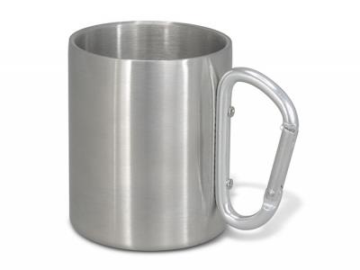 We also offer this type of mugs with colourful carabiner handles: Stainless Steel Mugs With Carabiner Handle (210ml)