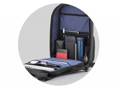 Flexible and practical, these custom printed gym bags are the first all in one business backpack and gym bag! The front pocket can expand to quickly convert the bag’s capacity from 16 to 24L. The anti-theft design keeps belongings secure using hidden pockets with RIFD protection and hidden zippers. The main compartment can only be accessed from the back of the backpack and includes a padded laptop sleeve as well as various sleeves and zippered pockets for organised storage solutions. These promotional bags are full of features to make life easier, including an integrated USB charging port, a sunglasses holder and uses RPET materials.