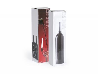 Get your logo printed onto these handy wine sets: A collection of 3 stainless steel wine tools presented in a bottle shaped box with a shiny finish and a magnetic closure. A promotional item every wine lover will love! The sets include a corkscrew with capsule cutter and opener, a dosing cap and a drip stop and will be presented in individual boxes.