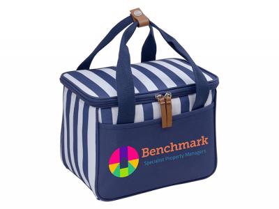 These custom printed cooler bags spread the maritime flair with their blue and white stripes. They are the perfect addition to your day out at the beach, picnic with friends or BBQ in the park. Made from stylish striped polyester, these on-trend cooler bags also feature a high quality super-insulating foam combined with ‘A-Grade’ (food safe) aluminium lining. They also come with super-soft cotton handles, leather look zip pullers & mini handle wrap as well as a handy outer slip pocket.