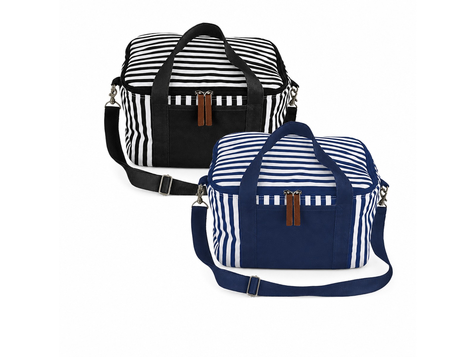 Get your logo printed onto these stylish Promotional Cooler Bags which are made from durable cotton canvas. They are insulated and perfect for everyday use though. They feature an on trend stripe design and your logo will be printed in either your corporate PMS colour or in stunning full colour onto the front pocket.