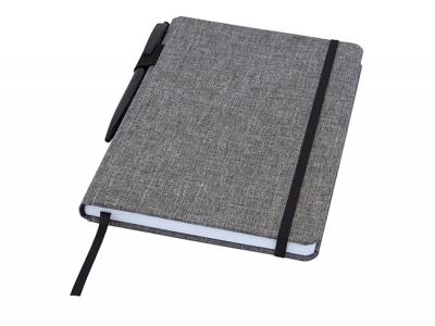 These promotional A5 size notebooks feature a cover which is made of RPET fabric and 96 sheets of 70gsm recycled lined paper. They also come with a pen loop and ribbon marker. (pen not included)