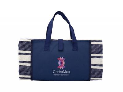 We can embroider the promotional trekk™ round picnic rugs with your company logo. The exact cost of the embroidery will depend on how large the embroidered area of your logo is. Sometimes logos are too detailed to enable us to effectively embroider them onto the trekk™ round picnic rugs, as the stitching will simplify your logo so that any fine detail will be lost or can simply not be achieved.