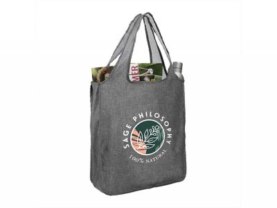 These custom printed Recycled PET Shopper Bags make a great alternative to plastic bags! They hold 30+ lbs and feature a large open main compartment as well as 11.5' drop handles.