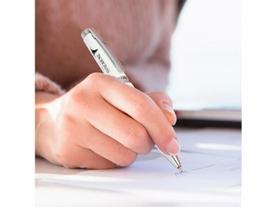 Engraving your logo on the promotional brass ball pens with shiny chrome accents is usually done by Laser engraving, where the laser removes a thin layer of the metal surface. Your logo becomes part of the brass ball pens with shiny chrome accents and is impossible to remove. Sometimes the engraved effect will be a different metal colour to the outside metal coating of your product. We can also engrave wood or plastic. Engraving is usually a more expensive branding method.
