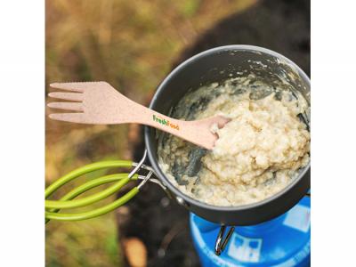 These custom branded eco wheat fibre combo utensils feature a spoon at one end and a fork with a serrated knife-edge at the other. They are a versatile, reusable and compact addition to any lunch pack, picnic basket, handbag and backpack.