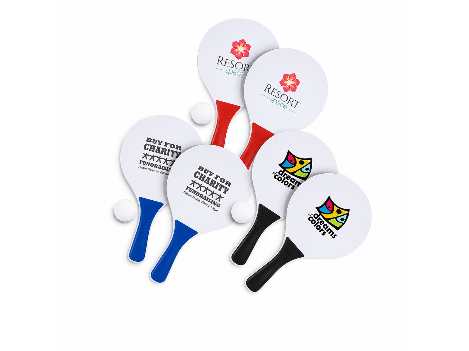 Your promotional paddel-ballspiel-sets can be silk screen printed in 1 or more colours. Costs shown include a 1 colour logo print on your custom branded paddel-ballspiel-sets. We can print more than 1 colour, however it incurs extra costs. We can achieve a perfect PMS colour match for the print.