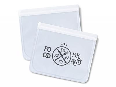 Diese individuell bedruckten wiederverwendbaren Beutel sind ein praktisches Accessoire zur Aufbewahrung von Gegenständen wie Lebensmitteln, Pässen, Telefonen oder anderem technischen Zubehör. Sie sind aus Vinyl gefertigt und verfügen über einen Zwickel und einen robusten Reißverschluss.