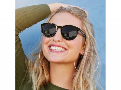Diese modische Sonnenbrille in Einzelhandelsqualität verfügt über einen schlagfesten Rahmen und Bügel aus Polycarbonat, die mit 100 % UV 400-Gläsern nach CE-Norm ausgestattet sind, die sowohl UVA- als auch UVB-Schutz bieten.