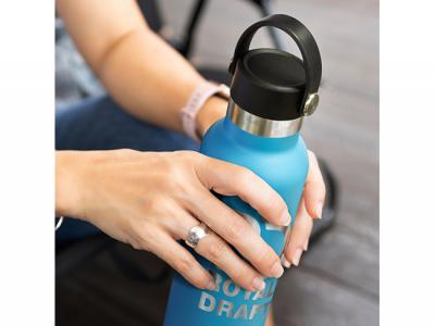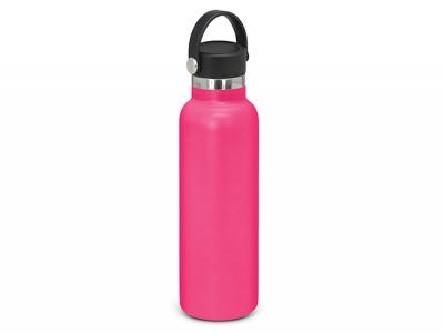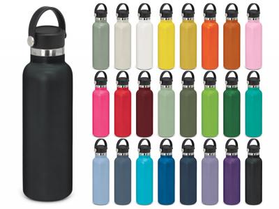 Diese klassischen 650 ml doppelwandigen, vakuumisolierten Edelstahl-Wasserflaschen haben eine extrem haltbare, pulverbeschichtete matte Oberfläche. Sie halten Getränke 24 Stunden lang kalt oder bis zu 12 Stunden heiß und bieten einen Tragedeckel für den einfachen Transport. Diese Werbe-Getränkeflaschen sind BPA-frei und der Laser graviert zu einem glänzenden Stahl-Finish.