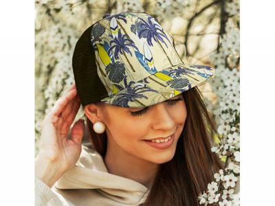Werbeartikel Vollfarbig bedruckte Trucker-Netzkappen aus Polyester mit flachem Schirm