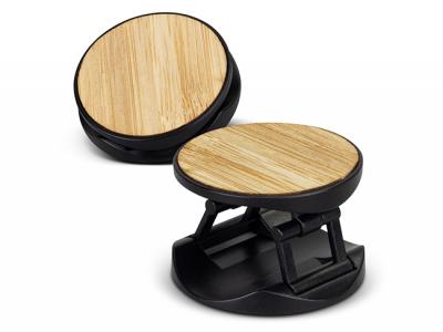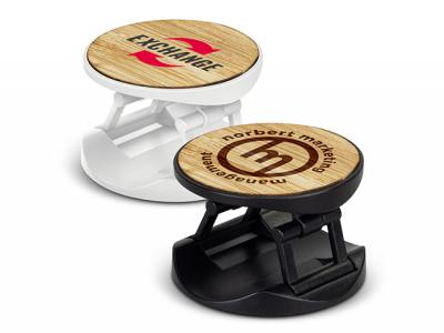 Diese Telefonhalter aus Holz haften auf der Rückseite jedes Mobiltelefons und bieten einen praktischen Griff für die Verwendung des Geräts. Sie werden aus Kunststoff und Bambus hergestellt. Diese Handyhalter für Werbezwecke funktionieren auch als Ständer und halten ein Mobiltelefon in horizontaler Position auf einer Oberfläche, damit es gut sichtbar ist.