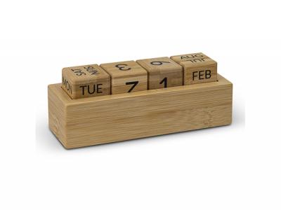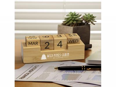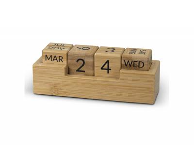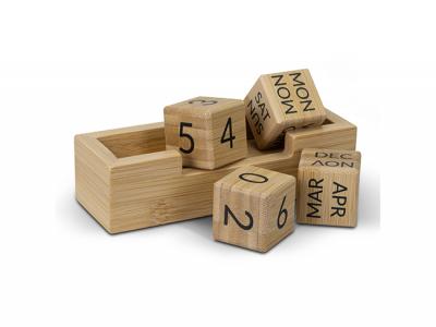 Diese praktischen Bambus-Tischkalender werden nie veraltet sein! Sie verfügen über austauschbare Blöcke, die sowohl die Tage als auch die Monate anzeigen.