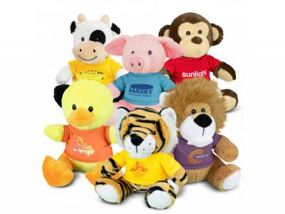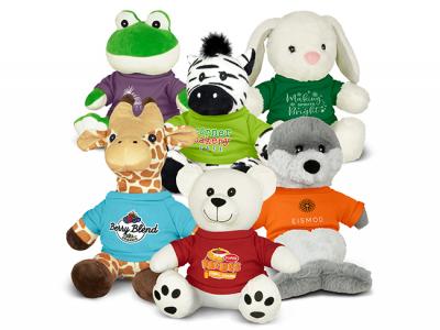 Entdecken Sie unsere entzückende Plüschtier-Menagerie mit einer Reihe von bezaubernden Tieren. Diese Plüschtiere sind nicht nur eine niedliche und kuschelige Option für das Branding, sondern auch ein hervorragendes Instrument für die Markenerkennung und die Verbreitung von Goodwill. Jedes Plüschtier hat gestickte Augen für zusätzlichen Charme und wird mit einem Polyester-T-Shirt geliefert, das in elf leuchtenden Farben erhältlich ist. Wählen Sie aus unserer Kollektion liebenswerter Tiere und erfreuen Sie Ihr Publikum, während Sie für Ihre Marke werben.