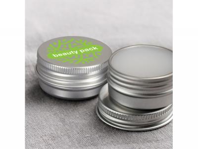 Kompakter 15g-Lippenbalsam mit Vanilleduft in einer reisefreundlichen Dose mit sicherem Schraubdeckel. Das Etikett mit den Inhaltsstoffen befindet sich auf dem Boden der Dose.