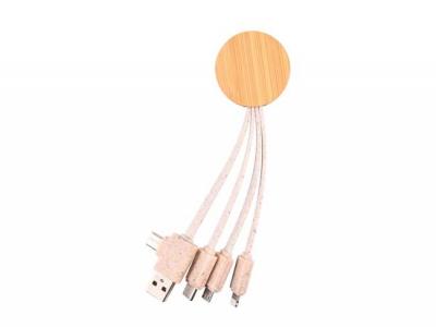 Werbeartikel Runde Bambus-Ladekabel aus Naturholz