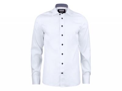 Merkmale: Verfügt über einen halben Cut-Away-Kragen und lange Ärmel mit einzelnen Angel-Manschetten, mit zusätzlichen Knopflöchern für Manschettenknöpfe. Ein geteilter Rückenpasse sorgt für glatte, konturierte Schultern und einen größeren Bewegungsspielraum. Tapezierte Hauptnähte sorgen dafür, dass das Hemd nach jedem Waschen immer ordentlich und wie neu aussieht. Verfügt über hohe, 4 mm dicke Knöpfe in kontrastierenden Farben für ein robustes, modernes Aussehen.